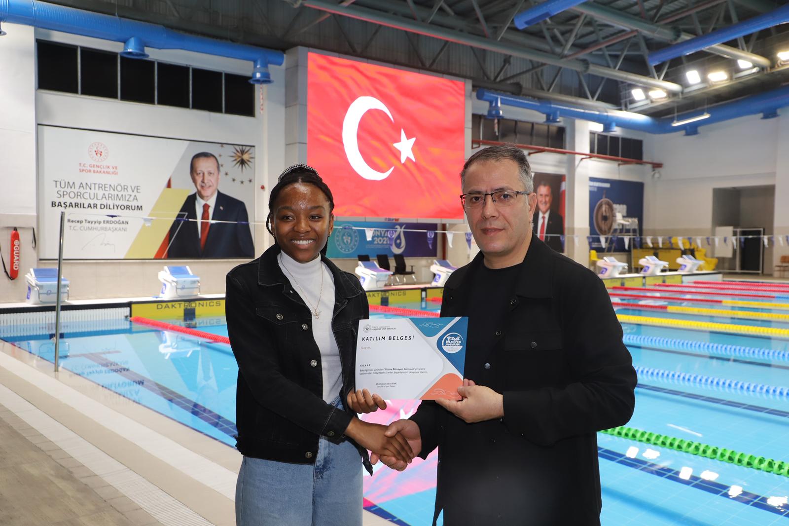 "Yüzme Bilmeyen Kalmasın” projesine 35 özel yurttan binin üzerinde öğrenci katılırken, kursları başarıyla tamamlayanlara sertifikaları protokol üyeleri tarafından takdim edildi.