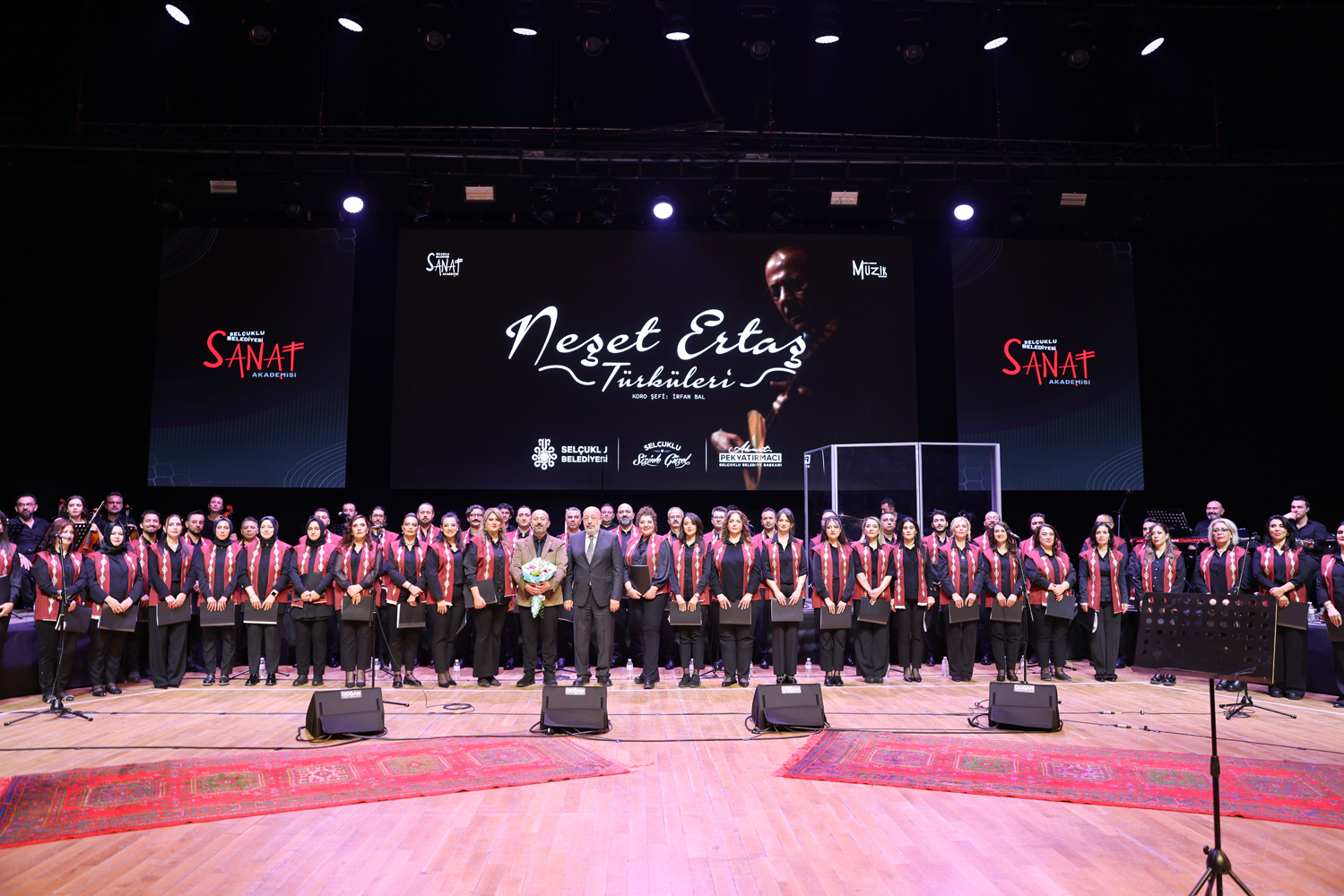 Neşet Ertaş'ın gönüllere dokunan eserlerin sanatseverle buluşmasından duyduğu memnuniyeti dile getiren Selçuklu Belediye Başkanı Ahmet Pekyatırmacı, "Bozkırın Tezenesi büyük usta Neşet Ertaş'ın gönüllerimize dokunan türküleri, Selçuklu Belediyesi Sanat Akademisi Müzik Topluluğumuzun düzenlediği konserde hemşehrilerimizle buluştu. Neşet Ertaş'ın kıymetli eserlerini başarıyla seslendiren değerli koromuzu ve kıymetli hocalarımızı kutluyorum. Bu vesileyle Neşet Ertaş'ı rahmetle yad ediyor, konserimize yoğun ilgi gösteren hemşehrilerimize teşekkür ediyorum" dedi.