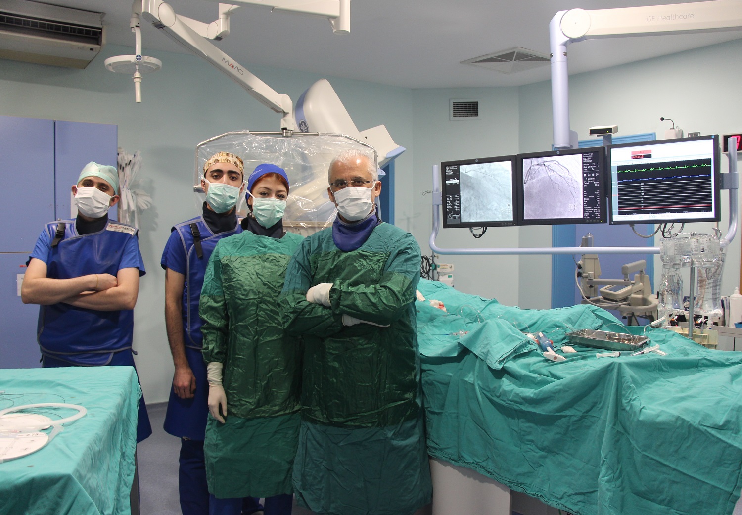 Prof. Dr. Şeref Ulucan, merkezde gerçekleştirilen girişimsel işlemlerin büyük bir kısmının el bileğinden yapıldığını vurguladı. Koroner anjiyografi, balon ve stent uygulamalarının yanı sıra; tam tıkalı damarlar (CTO), damar içi ultrason (IVUS) ve ilaçlı balon gibi tekniklerin kullanıldığını belirten Prof. Dr. Ulucan; açık cerrahinin yüksek riskli olduğu durumlarda kasık yoluyla yapılan kapak tamiratları (MitraClip, TriClip) ve kapak takma (TAVI) işlemlerinin de merkez bünyesinde uygulandığını paylaştı. Ayrıca aort genişlemeleri, bacak ve böbrek damar tıkanıklıkları ile sanal anjiyo (BT Anjiyo) yöntemleri merkezin çalışma alanları arasında yer alıyor.