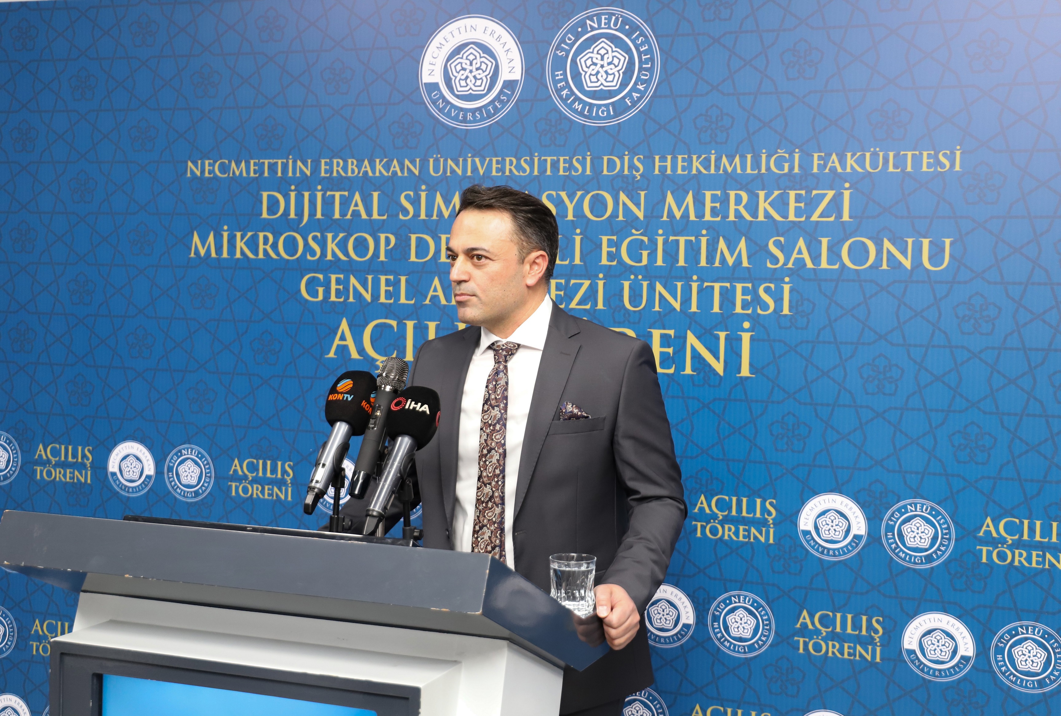 NEÜ Diş Hekimliği Fakültesi Dekanı Prof. Dr. Ali Rıza Tunçdemir ise, bilginin ve teknolojinin hızla yenilendiği bir dönemde eğitim altyapısının sürekli geliştirilmesinin büyük önem taşıdığını vurguladı. Mikroskop Destekli Eğitim Salonu ile öğrenciler, asistanlar ve serbest çalışan diş hekimlerine yönelik nitelikli eğitimler planladıklarını ifade eden Tunçdemir, ağız ortamının oldukça küçük bir çalışma alanı olduğunu belirterek, eğitim salonunda kullanılan mikroskopların yaklaşık 12,5 kat büyütme imkânı sunduğunu ve bu sayede daha başarılı ve uzun ömürlü restorasyonların yapılabildiğini söyledi. Devlet ve vakıf üniversiteleri arasında teknolojisi, altyapısı ve kullanım alanı bakımından ilk ve tek olma özelliğine sahip Dijital Simülasyon Merkezi'nde üçüncü sınıf öğrencilerinin hastayı birebir simüle eden cihazlarla eğitim aldığını, dördüncü sınıfta da klinik uygulamalara daha özgüvenli ve donanımlı şekilde geçtiklerini dile getiren Dekan Tunçdemir, bu sürecin öğrencilerin mesleki yeterliliklerini önemli ölçüde artırdığını belirtti.