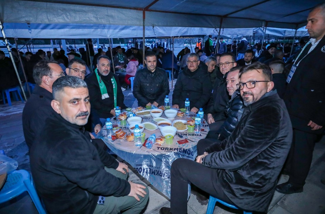 Mücadele öncesi Konya Milletvekili Mustafa Hakan Özer, AK Parti Konya İl Başkanı Fatih Özgökçen ile Konyaspor Başkanı Ömer Atiker ve yönetim kurulu üyeleri, Nalçacılılar Taraftar Derneği'nin stadyumda düzenlediği iftar programına katıldı.