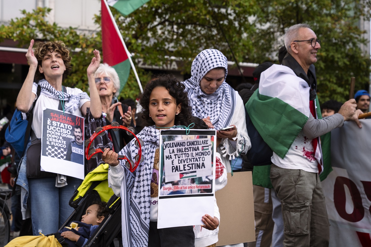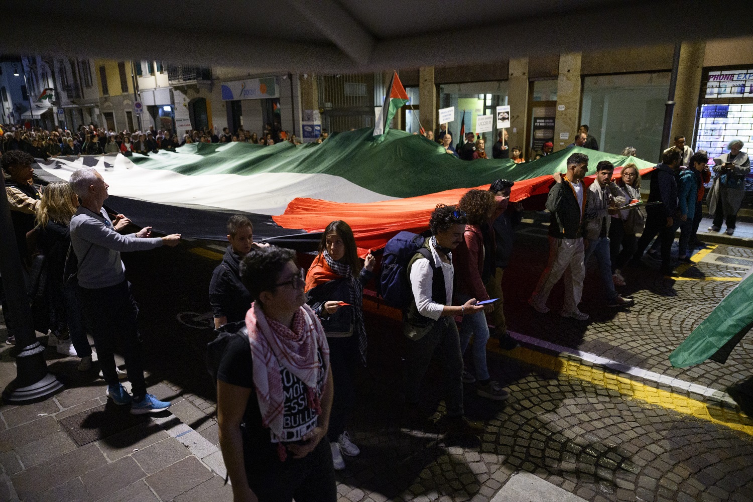 Müsabaka öncesinde Udine'de binlerce kişinin katılımıyla düzenlenen protesto yürüyüşünde, "Filistin'e özgürlük", "İsrail'i boykot et" sloganları atılırken, Filistin bayrakları ve "Özgür Filistin", "Soykırımcı İsrail" yazılı pankartlar taşındı.