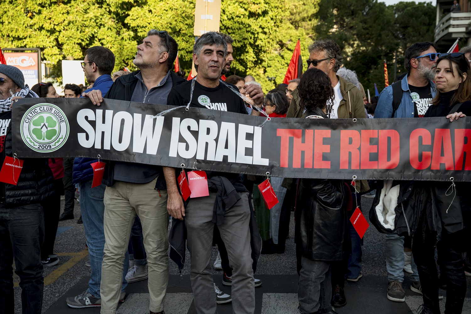 Bu arada, Udine de dahil başkent Roma, Milano gibi birçok kentte İsrail'in spor müsabakalarından men edilmesine yönelik gösteriler yapıldı.