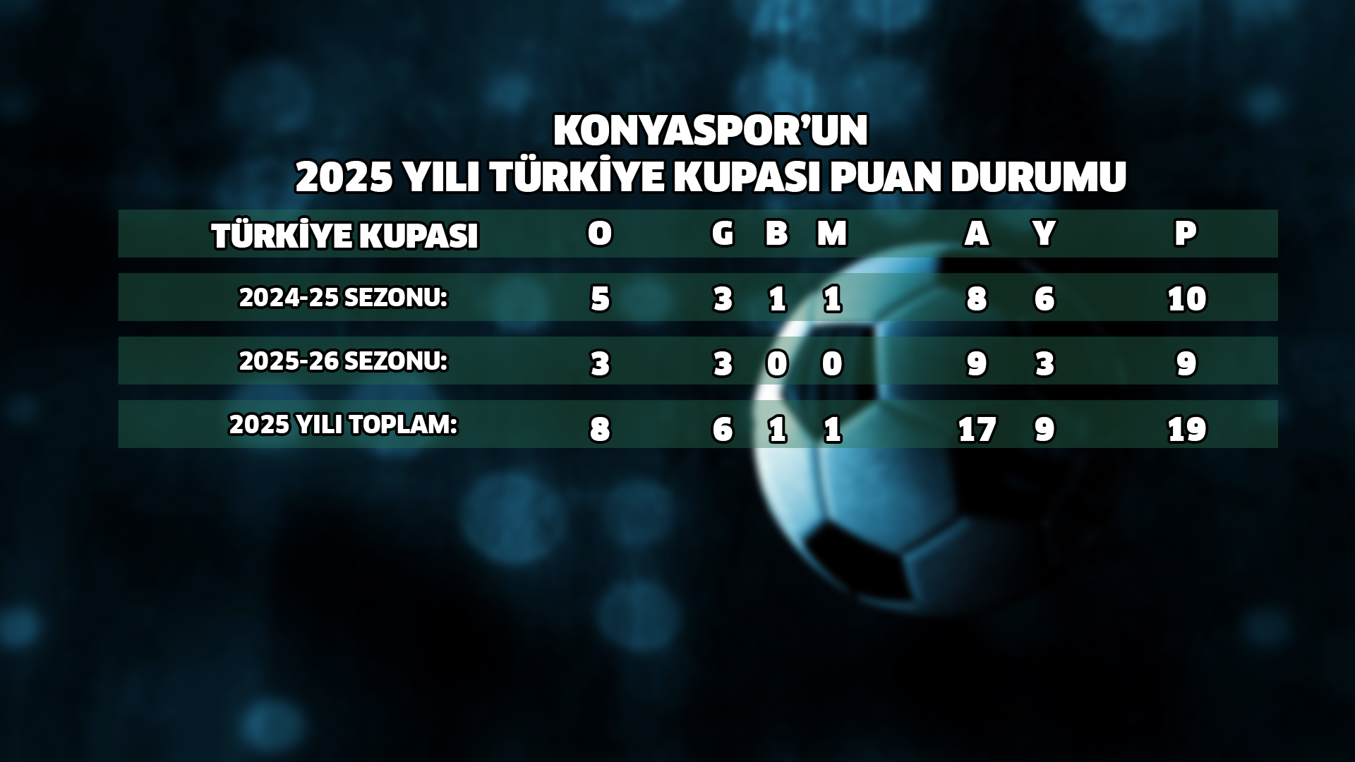 Konyaspor, 2025 yılında Türkiye Kupası arenasında da boy gösterdi. Yeşil-beyazlılar gerek tekli eleme gerekse grup aşamalarında tam 8 maça çıktı. Yeşil-beyazlılar bunlardan 6'sını kazanırken 1 maçtan beraberlikle, 1 maçtan da mağlubiyetle ayrıldı. Konyaspor bahse konu süreçte 17 kez ağlar sarsarken filelerinden de 9 top çıkarttı.