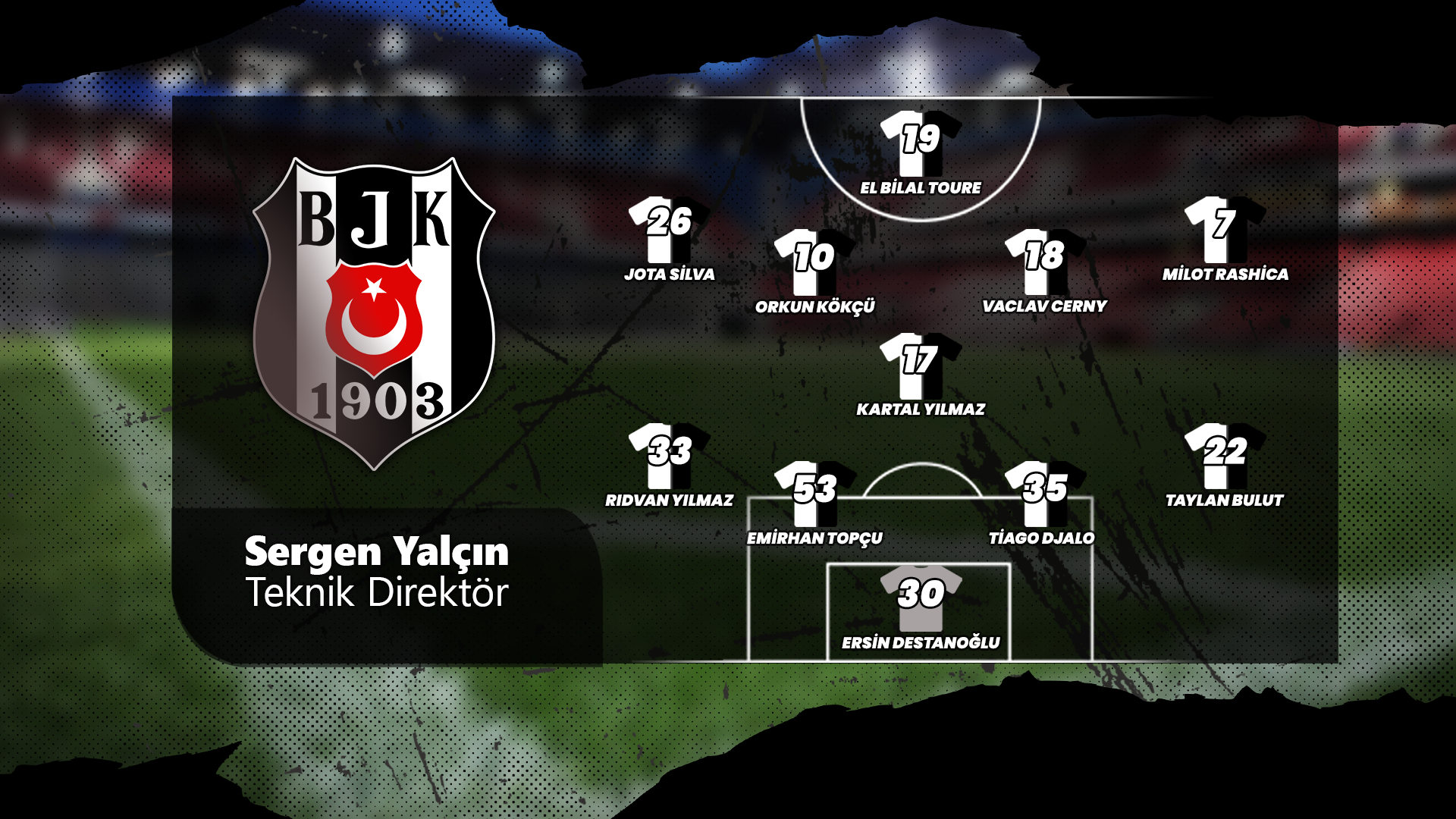 Teknik direktör Sergen Yalçın nezaretinde 4-1-4-1 dizilişiyle mücadele eden Beşiktaş'ın; Konyaspor'a karşı da aynı diziliş ve oyun anlayışıyla sahada yer alması bekleniyor. Siyah-beyazlı ekibin kalesinde Ersin Destanoğlu (30), savunma 4'lüsünde Taylan Bulut (22), Tiago Djalo (35), Emirhan Topçu (53) ve Rıdvan Yılmaz (33), tekli ön liberoda Kartal Yılmaz (17)i 4'lü orta alanda Milot Rashica (7), Vaclav Cerny (18), Orkun Kökçü (10) ve Jota Silva (26), tekli ileri uçta ise El Bilal Toure'nin (19) forma giymesi bekleniyor.