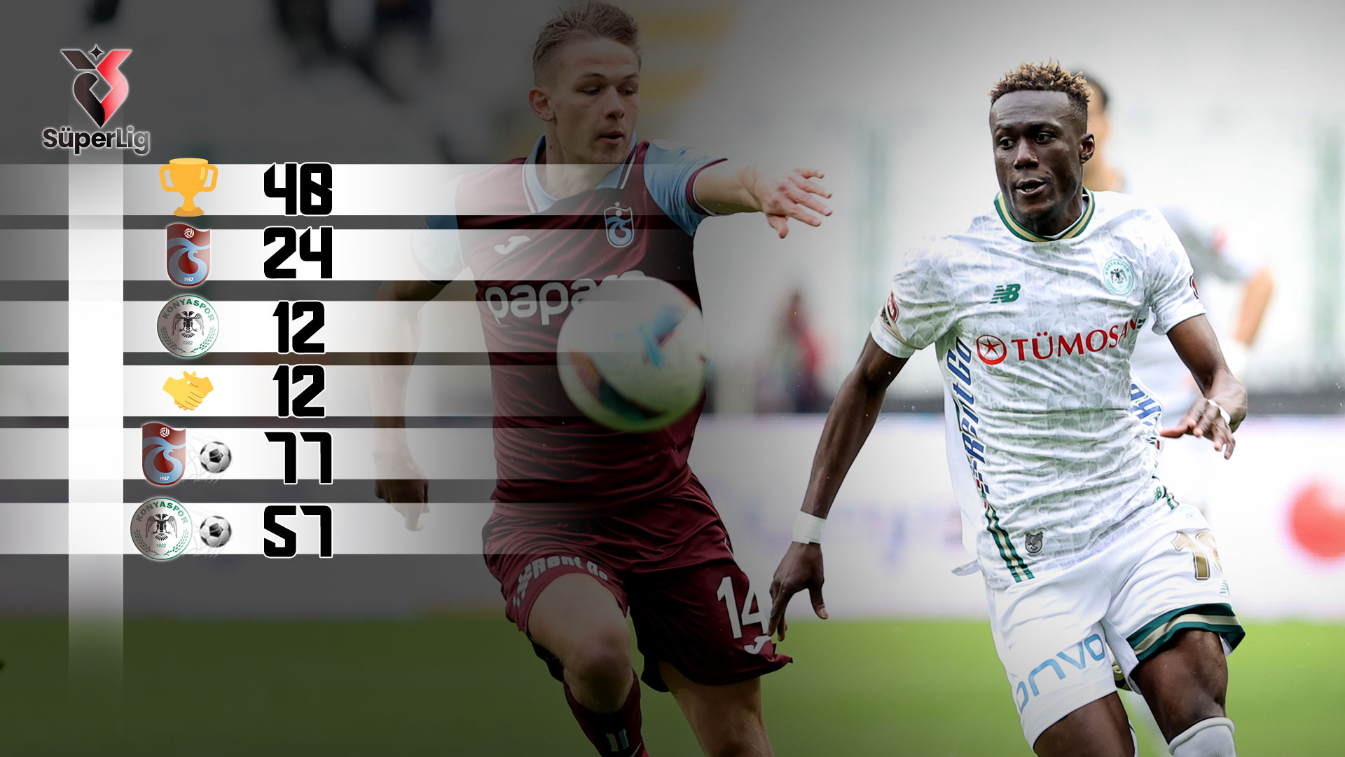 Trabzonspor ile Konyaspor, Süper Lig nezdinde daha önce 48 kez karşı karşıya geldi. Bu maçlardan 12'si Anadolu Kartalı'nın, 24'ü ise Trabzonspor'un üstünlüğüyle sona erdi. Arda kalan 12 maçta ise eşitlik bozulmadı. Konyaspor, Trabzon ağlarına 57 top bırakırken, filelerinden ise 77 top çıkarttı.