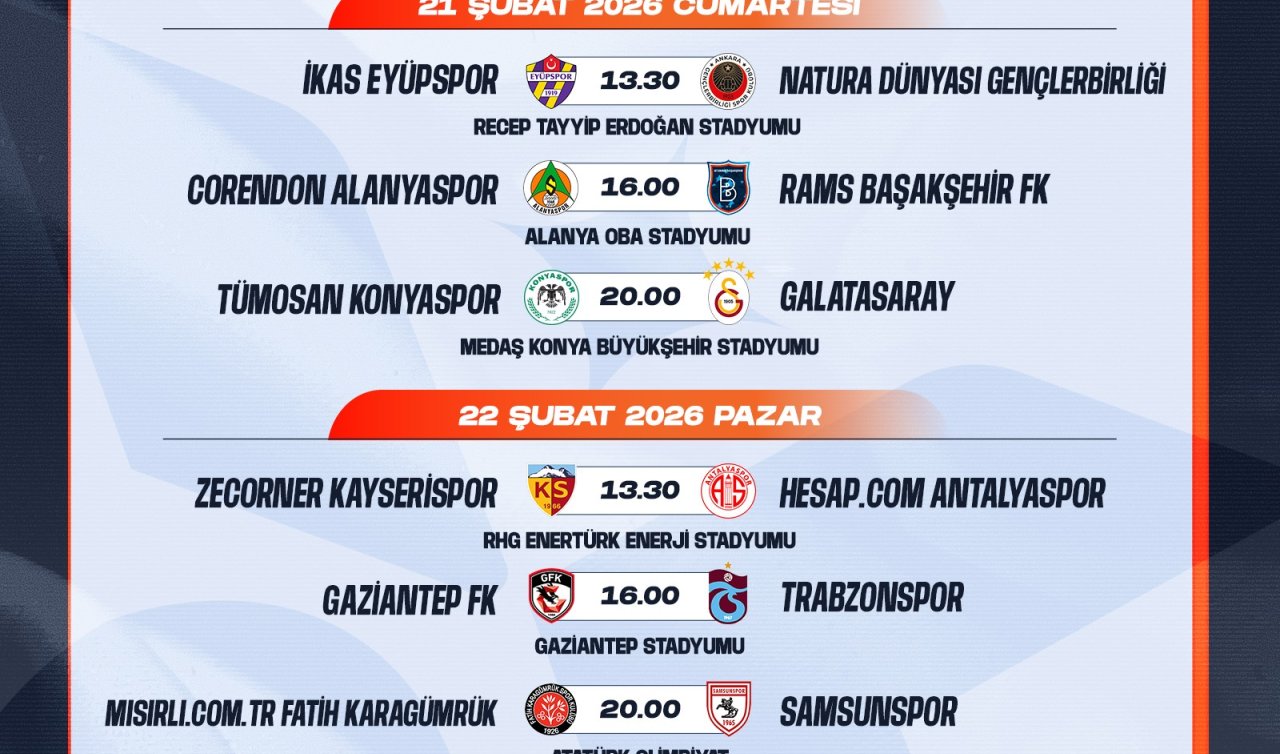 16.00 Corendon Alanyaspor - Rams Başakşehir 20.00 Konyaspor - Galatasaray