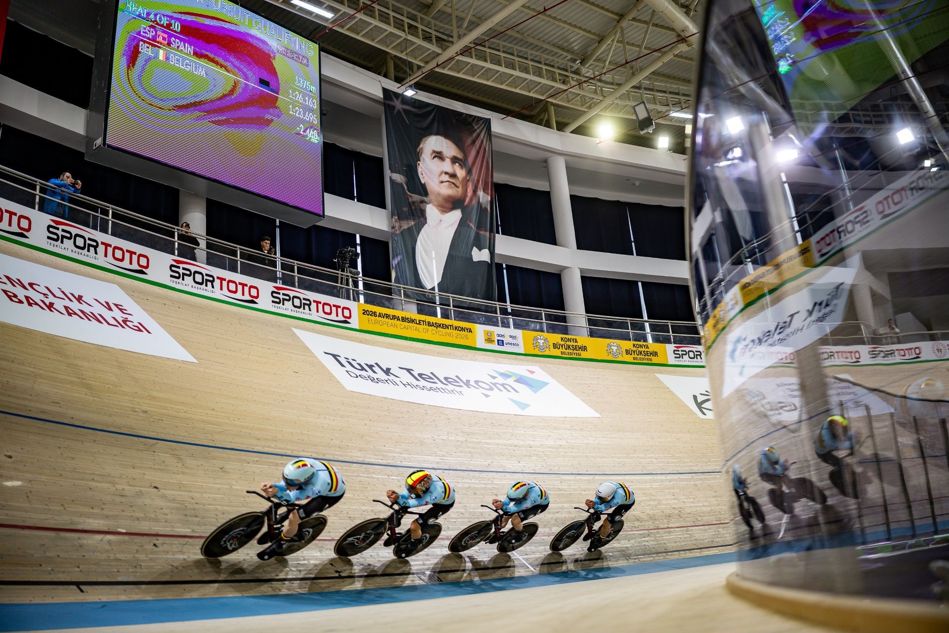 Konya'da 1-5 Şubat tarihleri arasında Avrupa Bisiklet Birliği ile birlikte Gençlik ve Spor Bakanlığı, Türkiye Bisiklet Federasyonu ile Konya Gençlik ve Spor İl Müdürlüğü koordinasyonunda, Konya Valiliği ve Konya Büyükşehir Belediyesi'nin destekleriyle Spor Toto ve Türk Telekom ana sponsorluğunda düzenlenen UEC 2026 Avrupa Pist Bisikleti Şampiyonası'nda ilk günün akşam seansı yarışları tamamlandı.