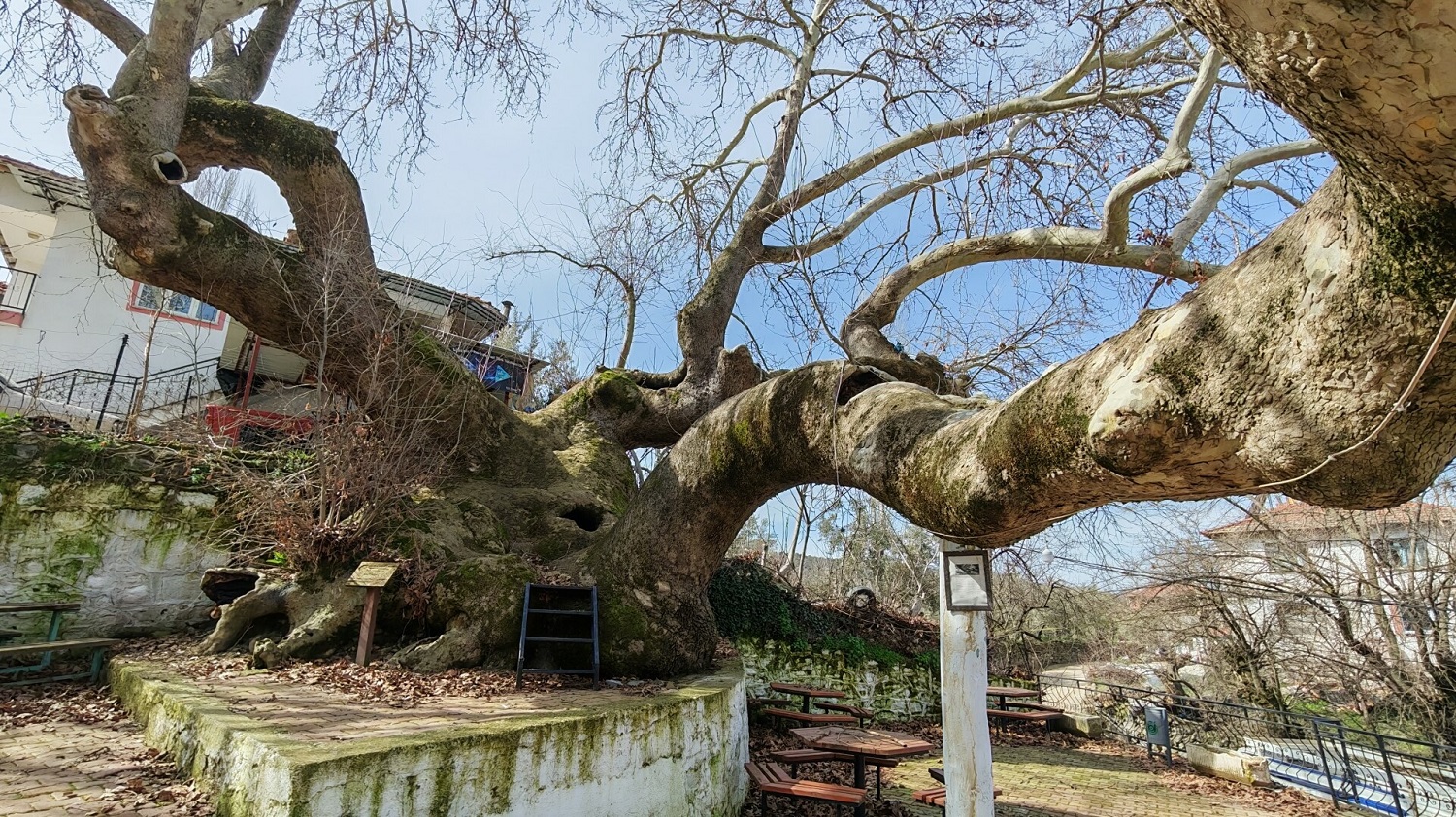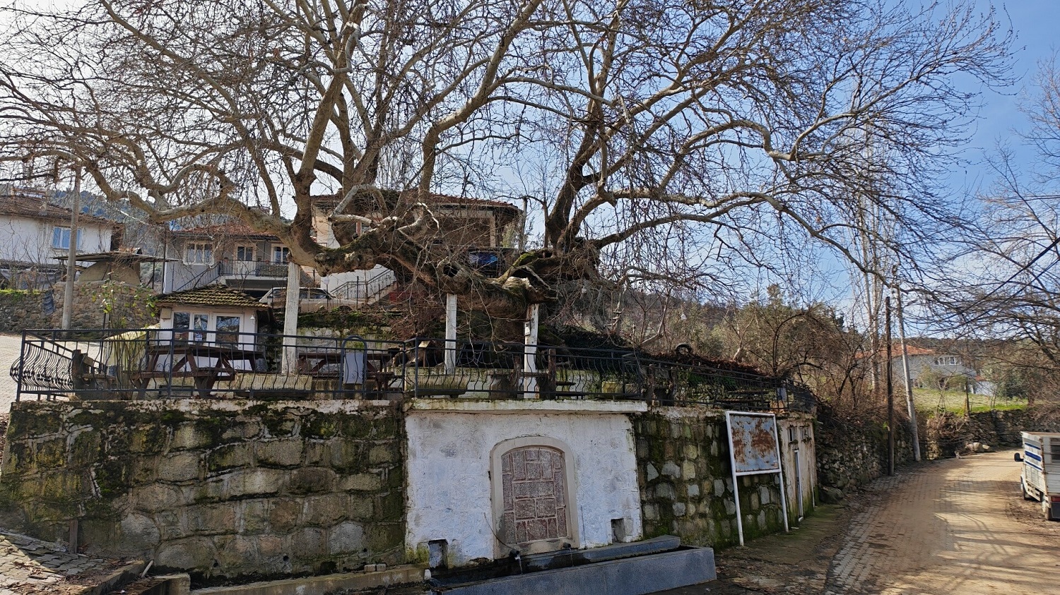 Tekeler Mahalle Muhtarı Abdurrahman Ünlü, "Mahallemizde yaklaşık 2 bin yaşında olduğu tescillenen çınar ağacımız var. Çınarımızın gövdesi 21 metre, yüksekliği ise 33 metre olarak ölçüldü. Çınarımızın bakımını ilgili yetkili kurumlar tarafından belirli zamanlarda yapmaktayız. Özellikle yaz akşamlarında burası çok güzel oluyor. İzmir, Ankara ve Bursa gibi birçok ilden çınarı görmeye geliyorlar. Mahalle sakinlerimiz büyüyen dallarının kırılmaması için çınarın daha da uzun yıllar yaşaması amacıyla ağaçtan destekler oluşturdu" dedi.