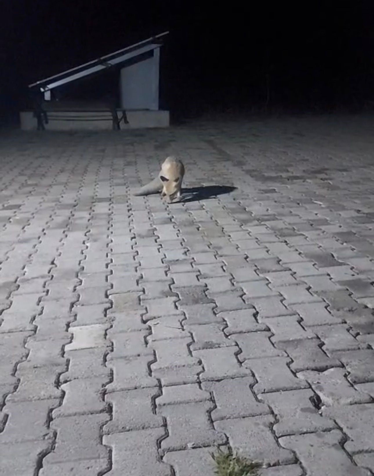 Korucu kulübesine kadar gelen tilki, kendisine verilen yiyeceklerle karnını doyurduktan sonra ormanlık alana geri döndü. O anlar cep telefonu kamerasına yansıdı.