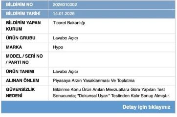 Bakanlık kayıtlarında yer alan bilgilere göre, Türkiye menşeli ürün üzerinde gerçekleştirilen resmi denetim ve laboratuvar testleri, ürünün teknik mevzuata uygun olmadığını ortaya koydu.