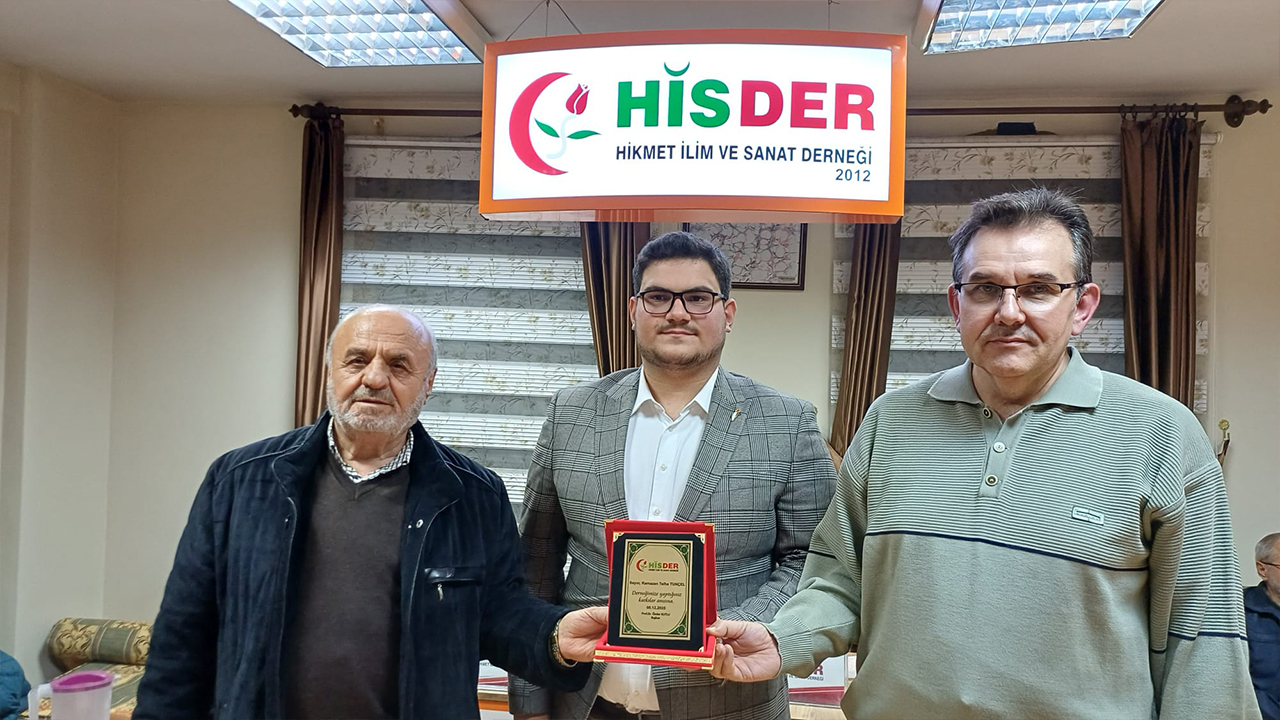 Sohbetin soru cevap kısmından sonra Yaşar BİLEN'e HİSDER Başkan Yardımcısı Mustafa DÜNDAR ve Mehmet Emin PARLAKTÜRK tarafından Ramazan Talha TUNÇEL'e ise Abdurrahman ÖZDİL ve Dernek sekreteri Hasan ÖZÜCAN tarafından dernek plaketi takdim edildi. Toplantı toplu fotoğraf çekimiyle sona erdi.