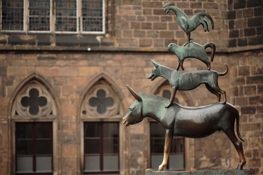 Dünya çocuk edebiyatının en sevilen masallarından biri olan "Bremen Mızıkacıları", sahipleri tarafından yaşlandıkları için dışlanan dört hayvanın, özgürlük ve müzik dolu bir gelecek hayaliyle Bremen şehrine doğru yola çıkışlarını anlatır. Birlik ve beraberliğin gücünü simgeleyen bu masalda, hayvanların üst üste binerek hırsızları korkuttuğu o meşhur sahne, heykel sanatına da ilham kaynağı olmuştur.